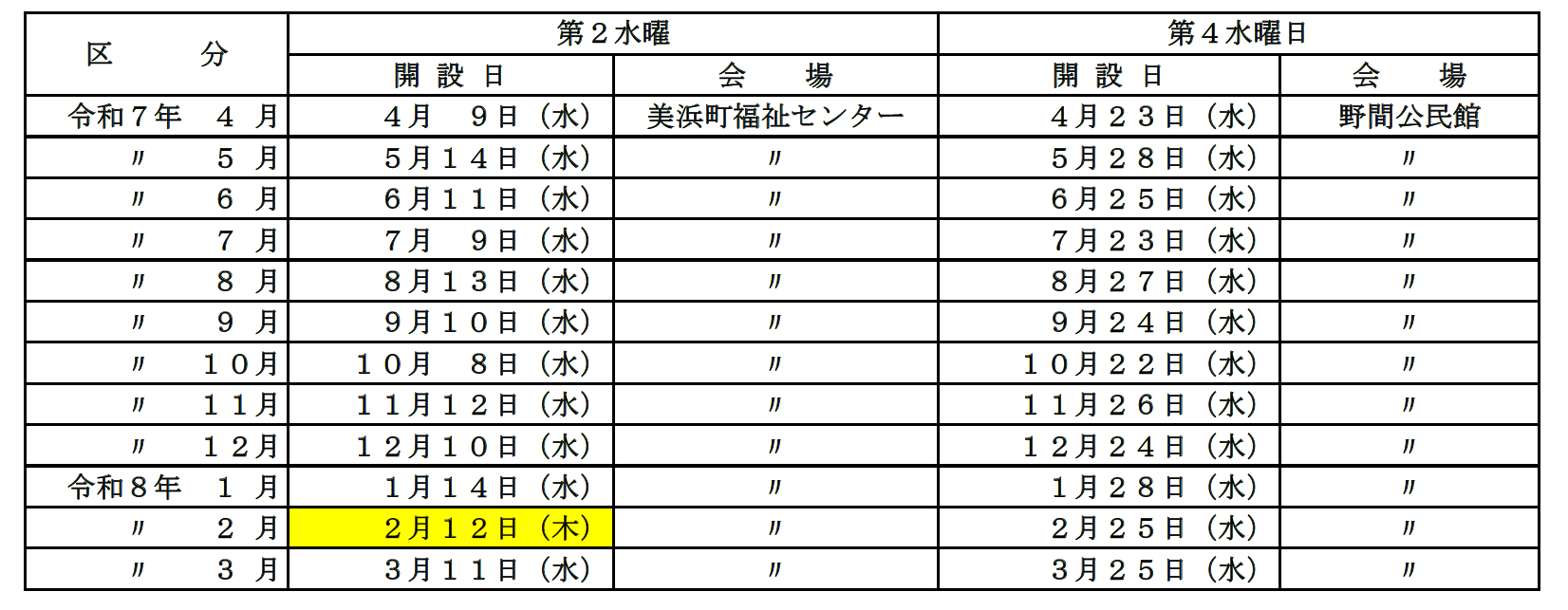住所: 美浜町北方一丁目1番地(旧中部電力美浜営業所) - 第4水曜日